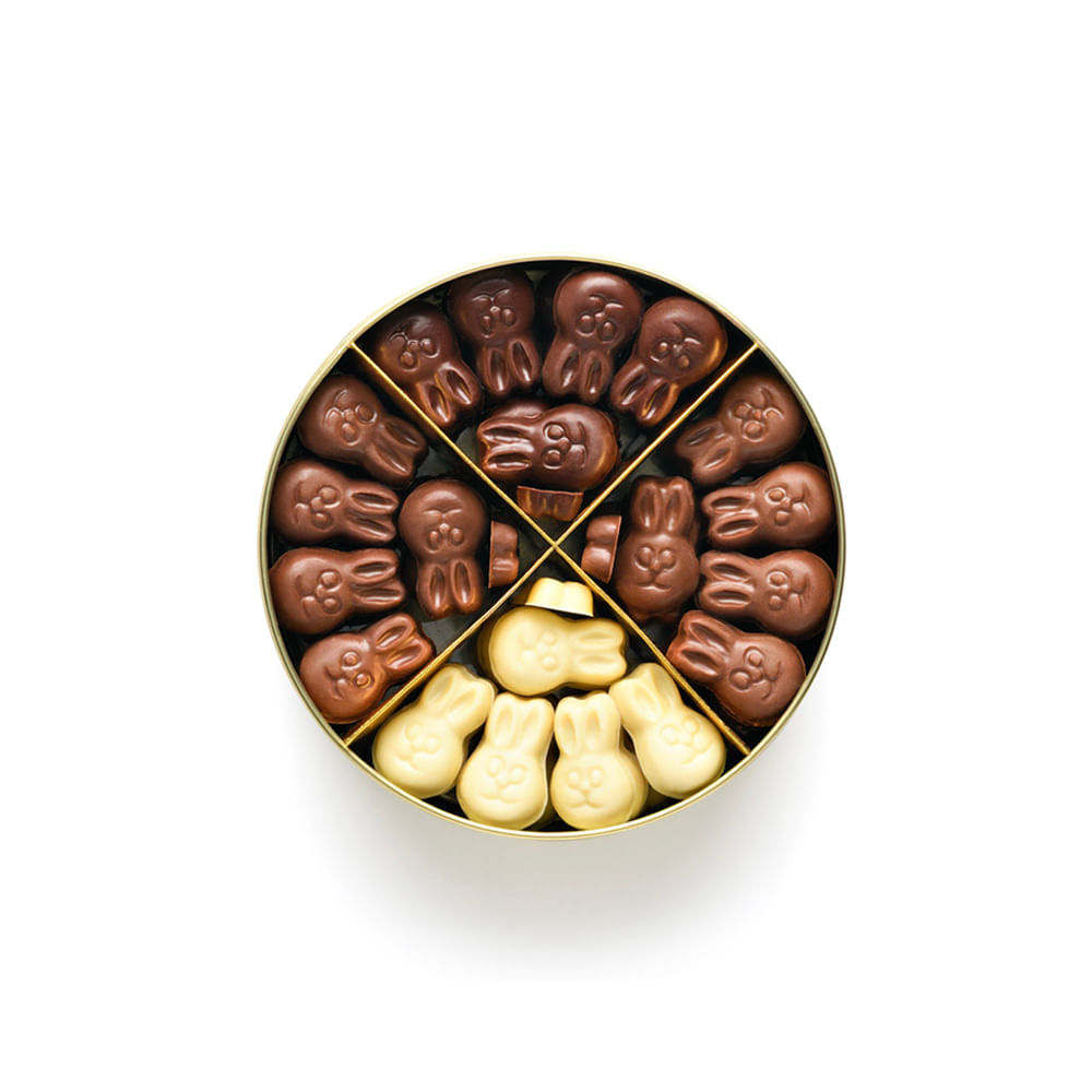 D - CARINHA DE COELHO AO LEITE CROCANTE. Ingredientes: Açúcar, manteiga de cacau, leite em pó integral, amêndoa, manteiga e emulsificante lecitina de girassol. CONTÉM GLÚTEN. CONTÉM LACTOSE. ALÉRGICOS: CONTÉM LEITE E DERIVADOS, AMÊNDOA. PODE CONTER AMENDOIM, AVELÃ, CASTANHAS, CEVADA, MACAD MIA, NOZES, PISTACHE, SOJA E TRIGO.